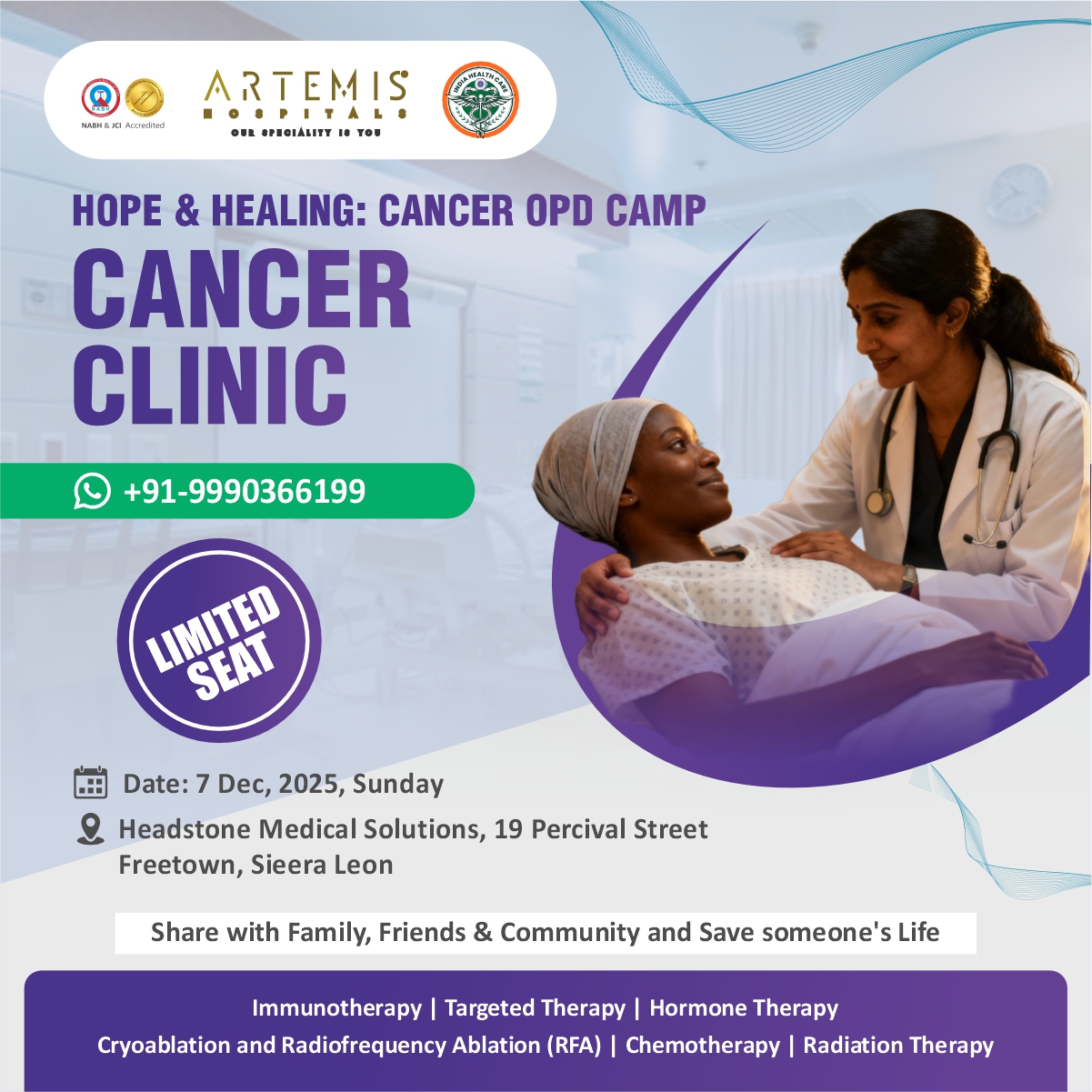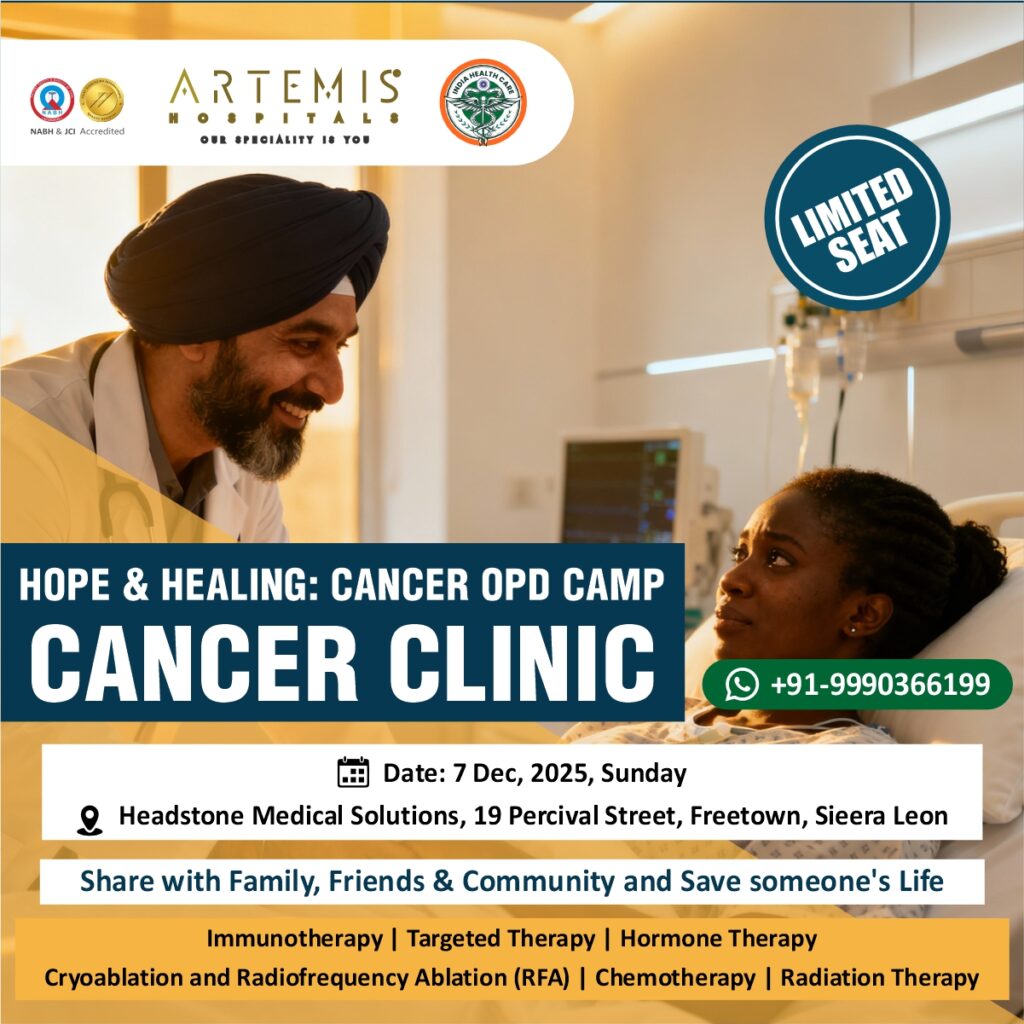 In a groundbreaking initiative, Artemis Hospital, a renowned name in cancer care from India, is bringing hope and healing to Sierra Leone by organizing the first-ever Cancer OPD camp in Freetown. Scheduled for December 7, 2025, at Headstone Medical Solutions, this camp marks a historic moment – the first time an Indian cancer specialist, Dr. Mukesh from Artemis Hospital, will conduct an OPD in Sierra Leone.